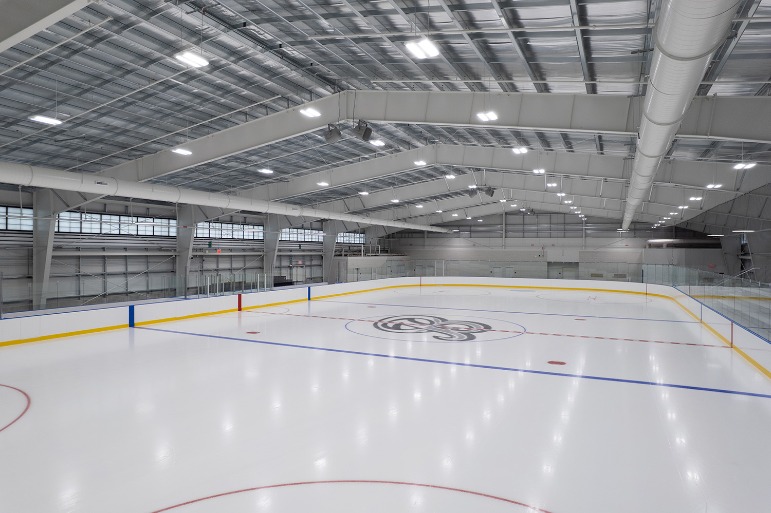 Following a 2022 feasibility study, the Town of Belmont replaced the 50-year-old Viglirolo Skating Rink with a modern, all-electric skating facility serving community programs, high school athletics, and seasonal camps. The approximately 37,000-square-foot, steel-framed building features a regulation 200-foot by 85-foot ice sheet, team locker rooms, public restrooms, bleacher seating, and a concession area supporting adjacent athletic fields.
