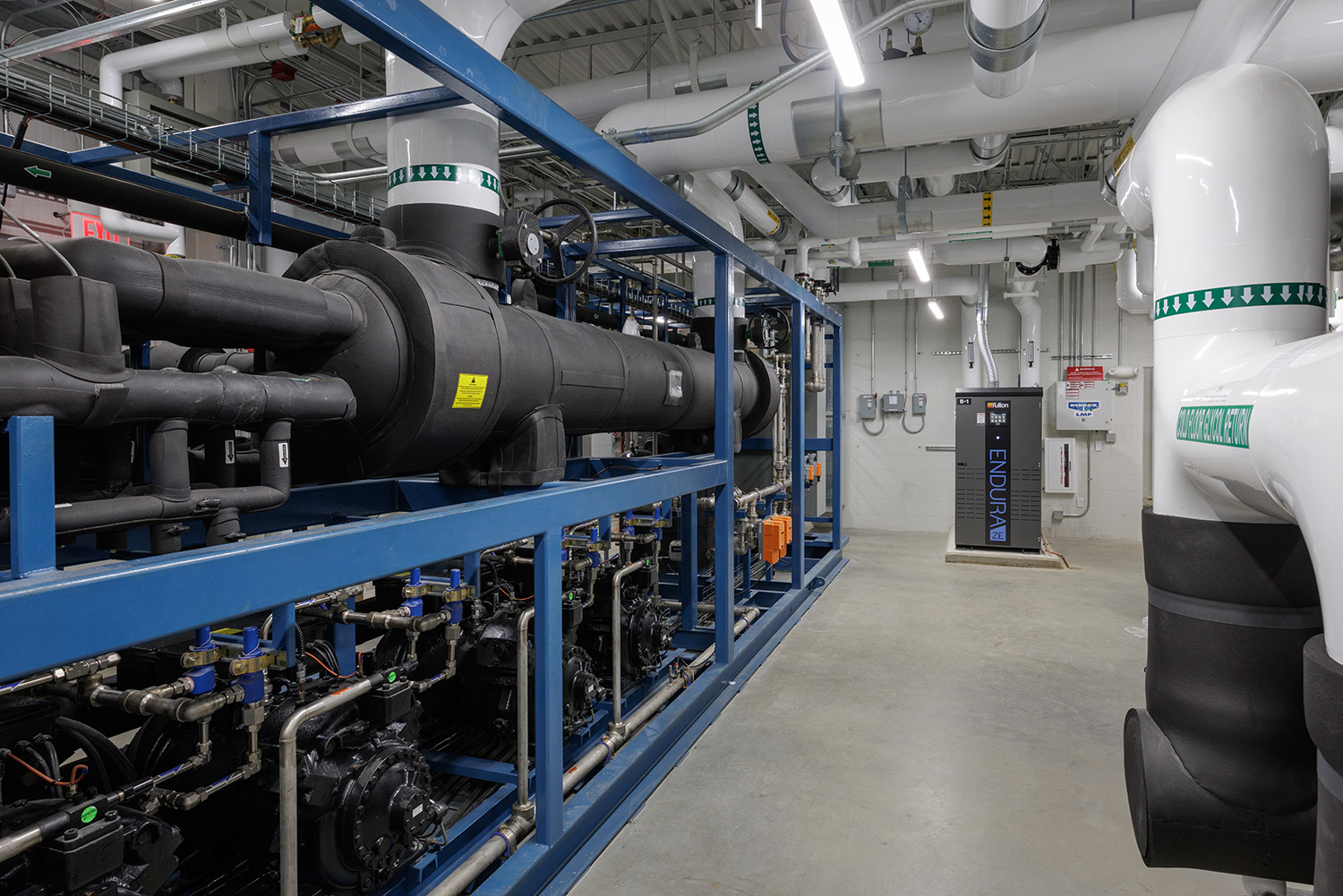 The facility incorporates advanced energy-efficient systems, including an all-electric, CO₂-based heat-pump refrigeration system with heat recovery, energy recovery strategies, and infrastructure for future photovoltaic (PV) solar installation, supporting fossil-fuel-free operation and long-term net-zero readiness.