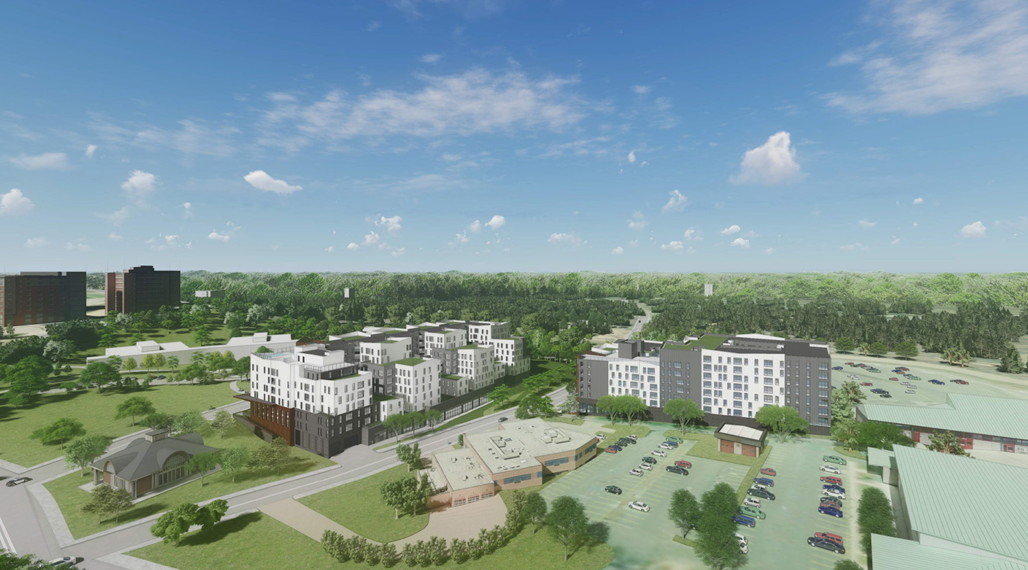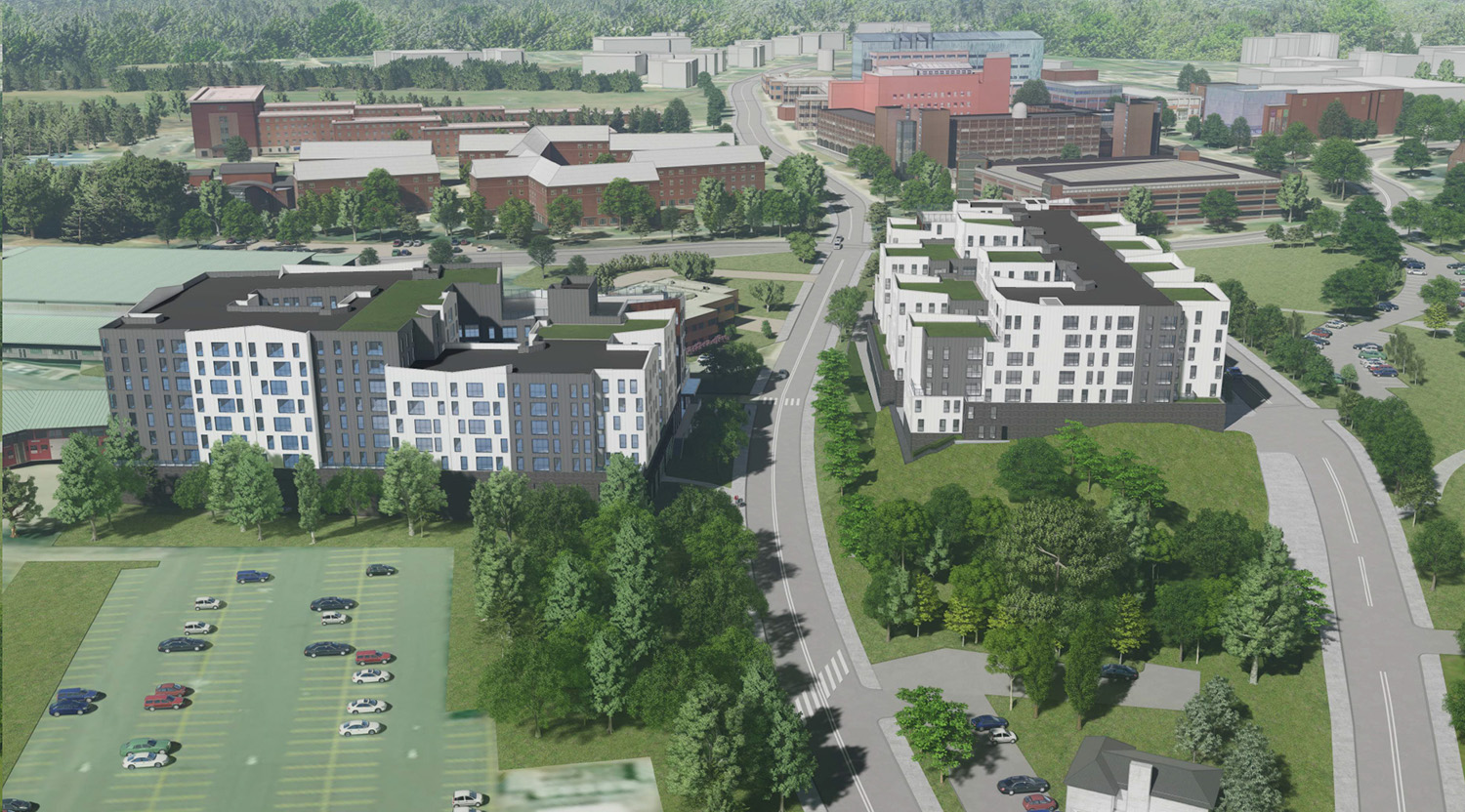 Originally constructed in the 1940s and 1950s, the Mansfield Apartments have reached the end of their useful life and no longer align with the evolving needs of UConn’s expanding student population. In response, Landmark Properties is redeveloping the site with two new mixed-use residential buildings that prioritize modern student living.